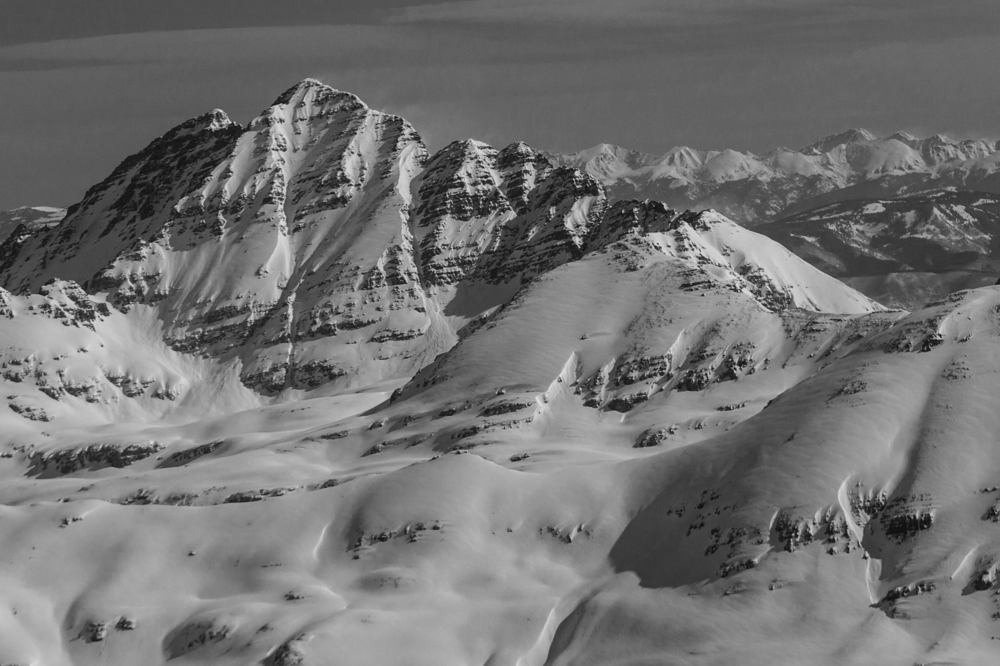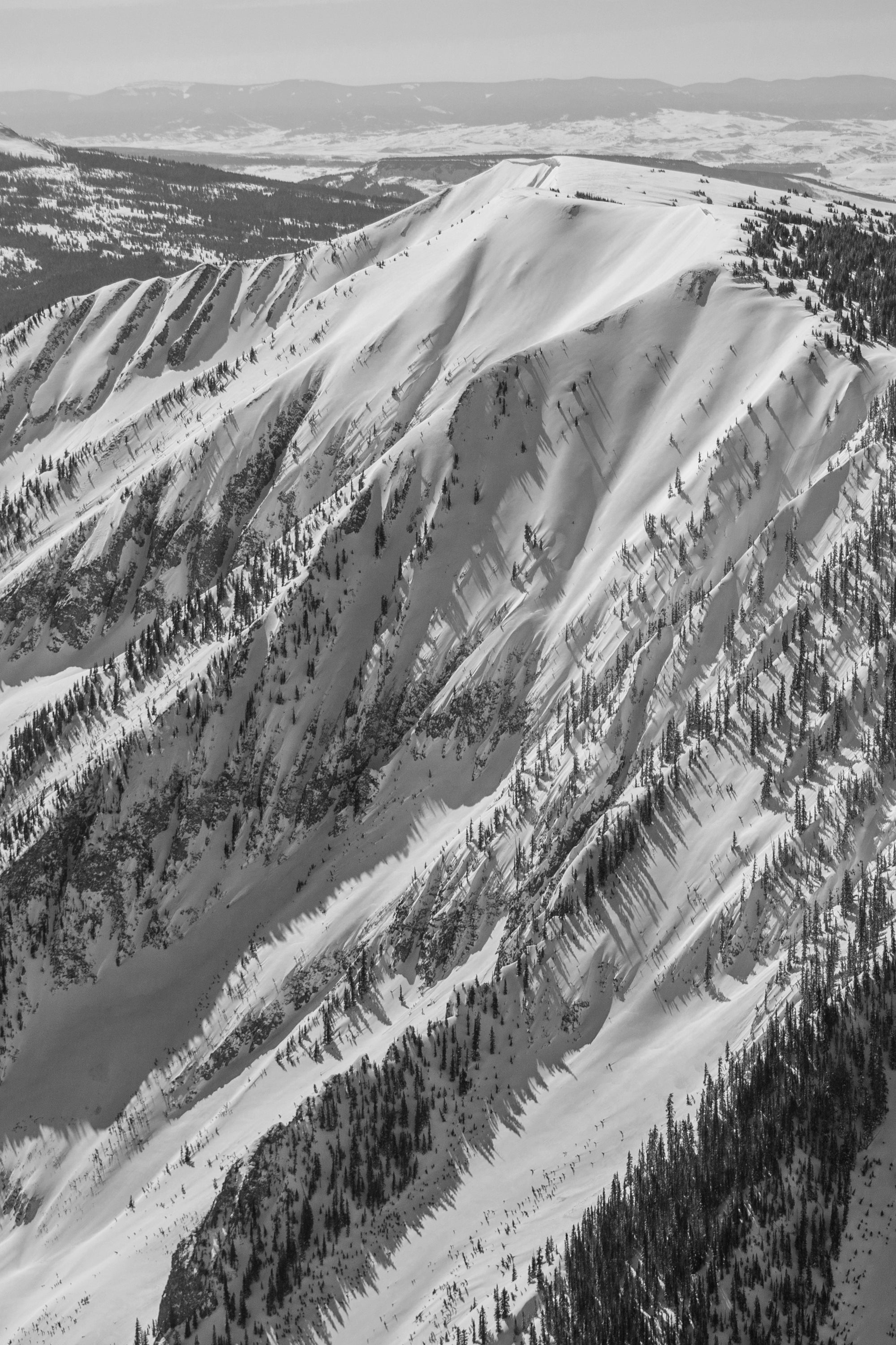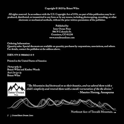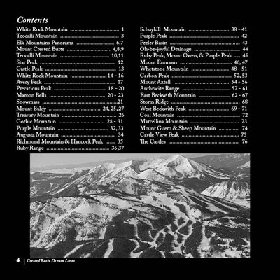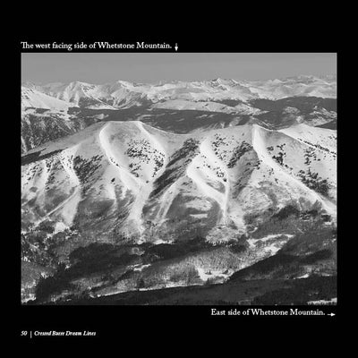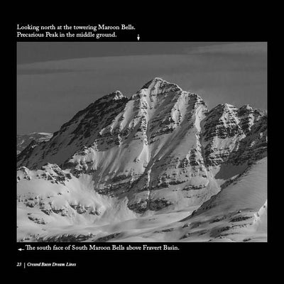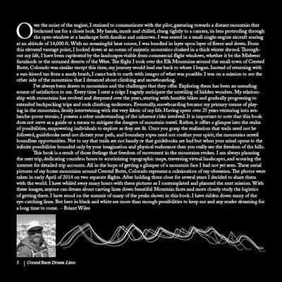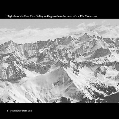 Crested Butte Dream Lines is a result of the feelings that freedom of movement in the mountains evokes. I am always planning the next trip, dedicating countless hours to scrutinizing topographic maps and traversing virtual landscapes. These aerial pictures of my home mountains around Crested Butte, Colorado represent a culmination of my obsession. The photos were taken in early April of 2014 on two separate flights. After holding them close for many years I decided to share them with the world. I have whiled away many hours with these pictures as I contemplated and planned the next mission. With these images, anyone can dream about carving lines down beautiful mountain faces. I have ridden down many of the eye-catching lines. But here in black and white are more than enough possibilities to keep me and any reader dreaming for a long time to come.